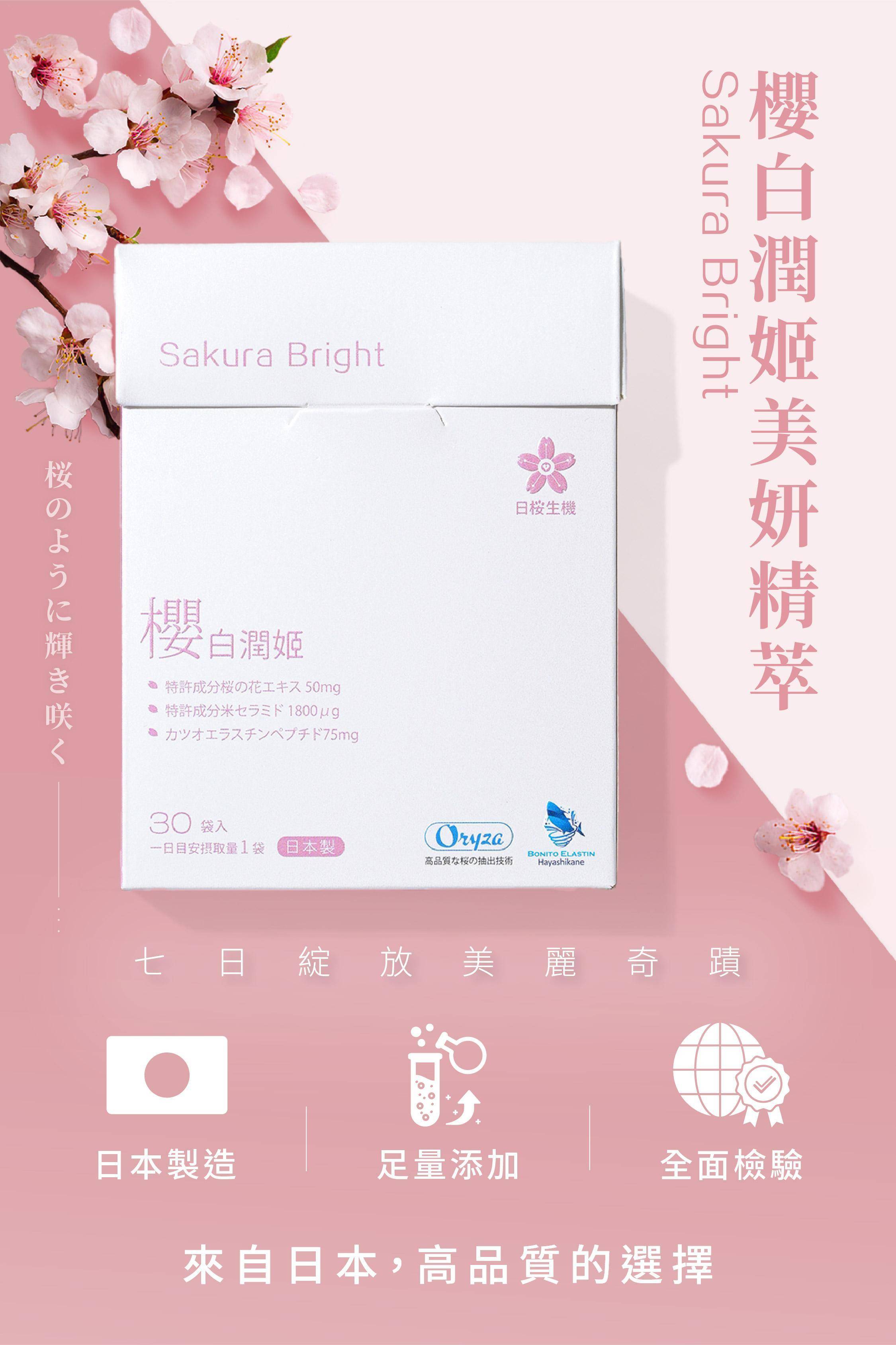 櫻白潤姬,膠原蛋白,養顏美容,玻尿酸,神經醯胺,彈性蛋白,維生素C,美妍,櫻花,美顏保健品,美容保健,日本膠原蛋白,美白,抗老,保濕,日櫻生機,北海道鮭魚精華