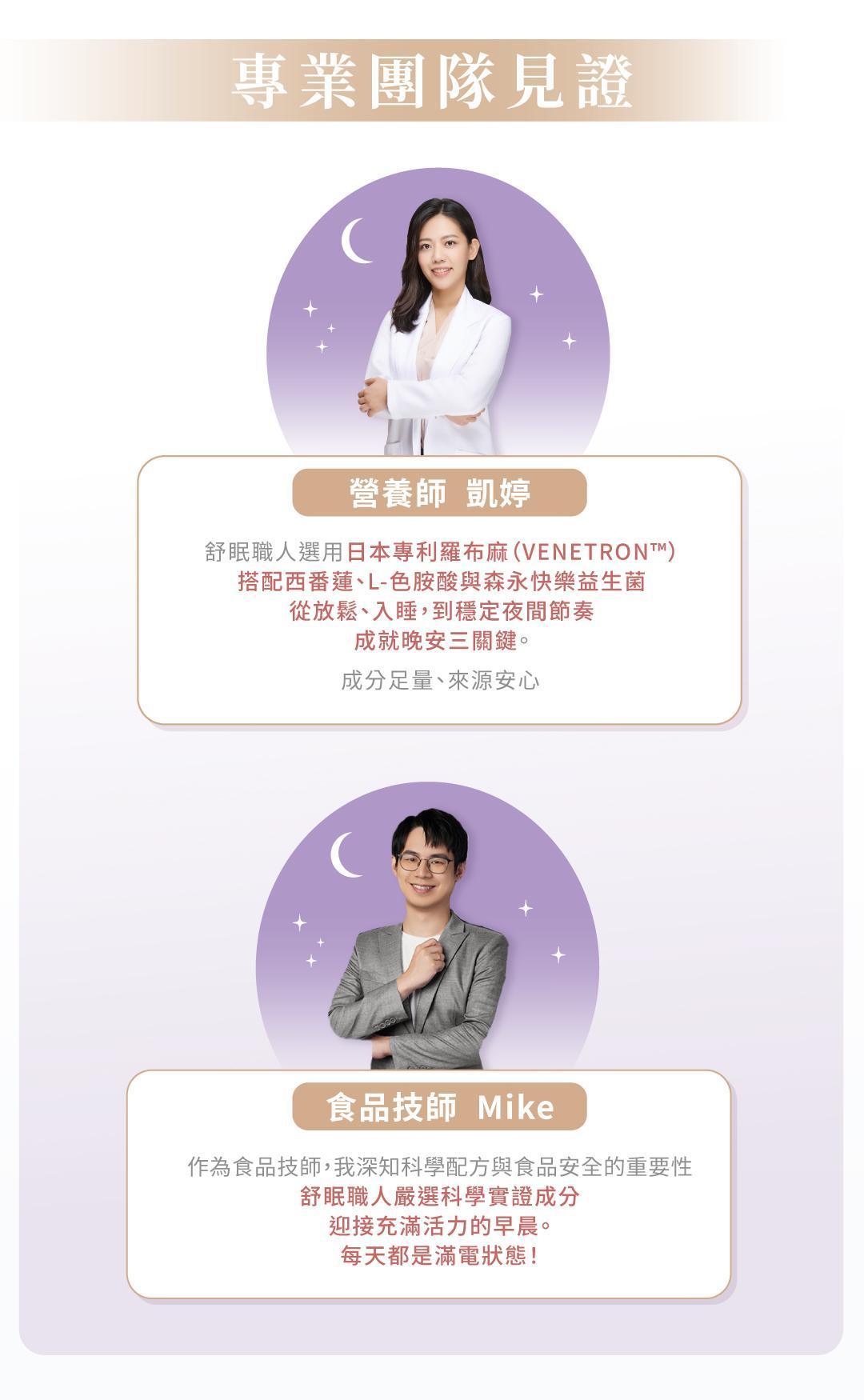 舒眠職人,舒眠,晚安,晚安複方膠囊,晚安膠囊,睡眠,睡不著,羅布麻,L-色胺酸,西番連,瑞士桿菌,益生菌,GABA,淺眠,幫助入睡,褪黑激素,睡眠保健