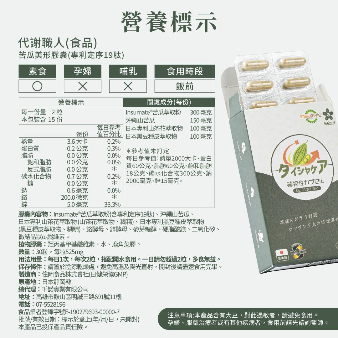 【新品上市體驗價售完為止】 代謝職人-苦瓜美形膠囊 30粒/盒 優惠至 2026/02/28