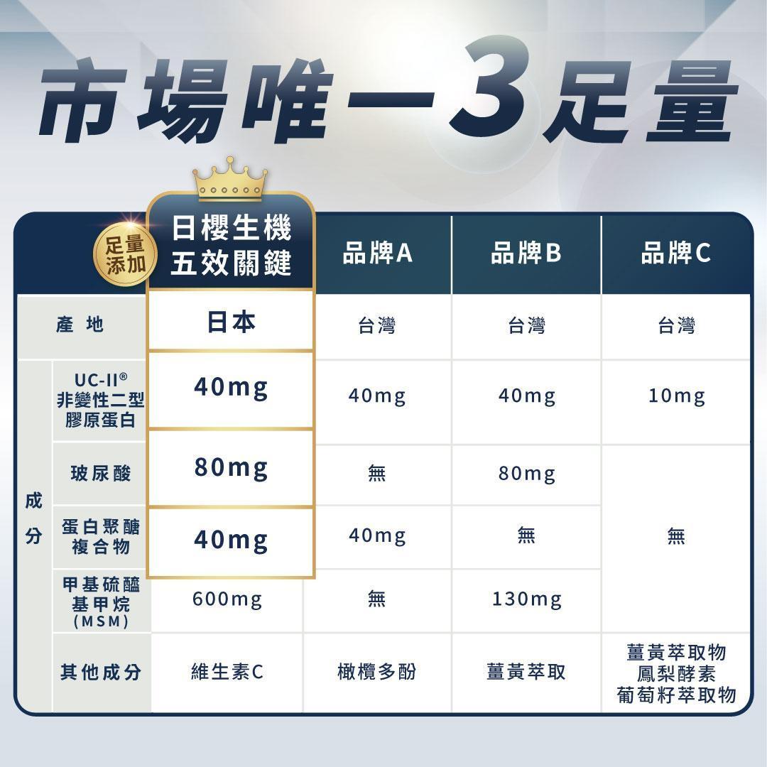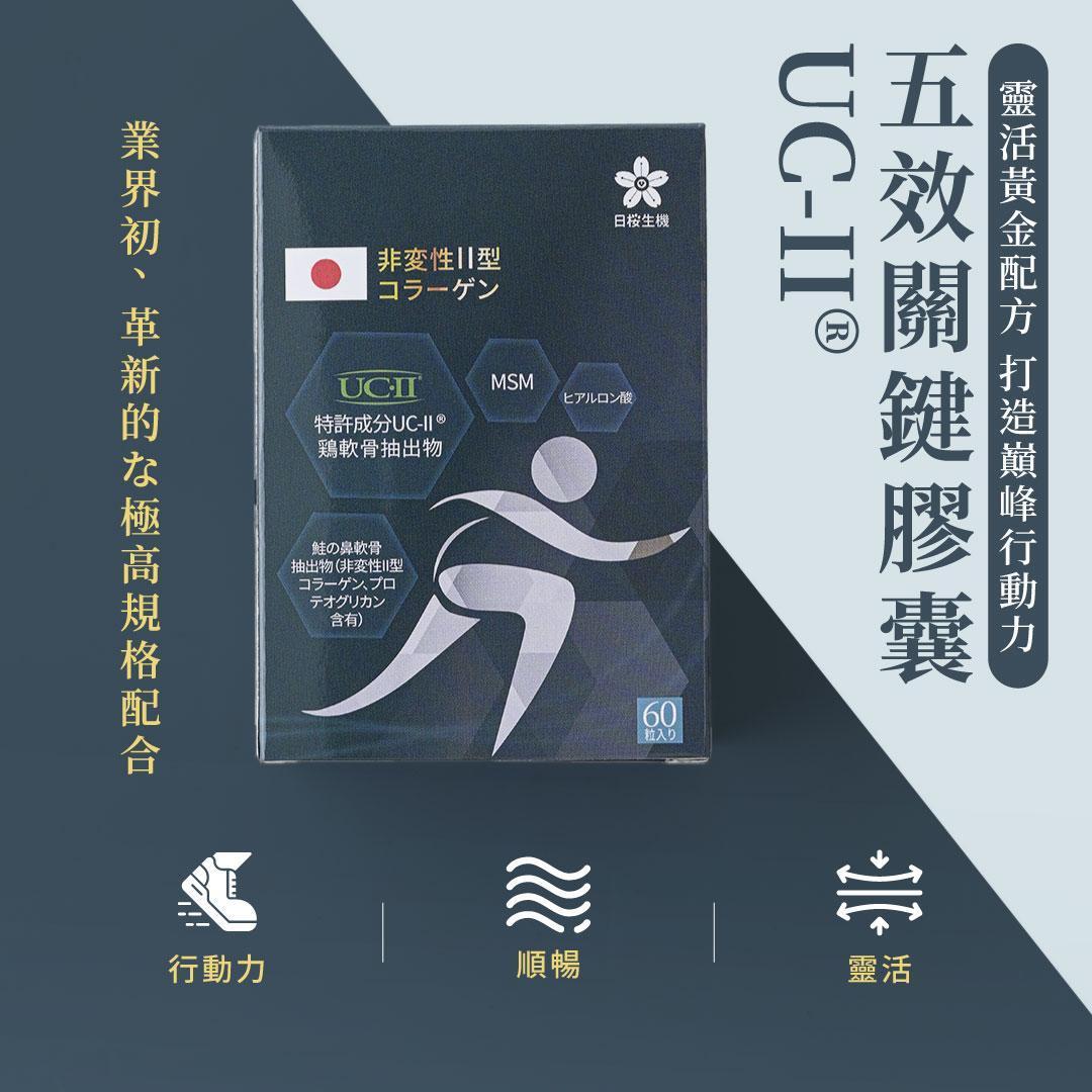 五效關鍵,UCII,UC2,UC-II,MSM,行動力,靈活,腳步,葡萄糖胺,軟骨素,潤滑,玻尿酸,蛋白聚醣,鈣,日櫻生機,UCII推薦,UCII功效,關節保養,UCII品牌,北海道鮭魚精華